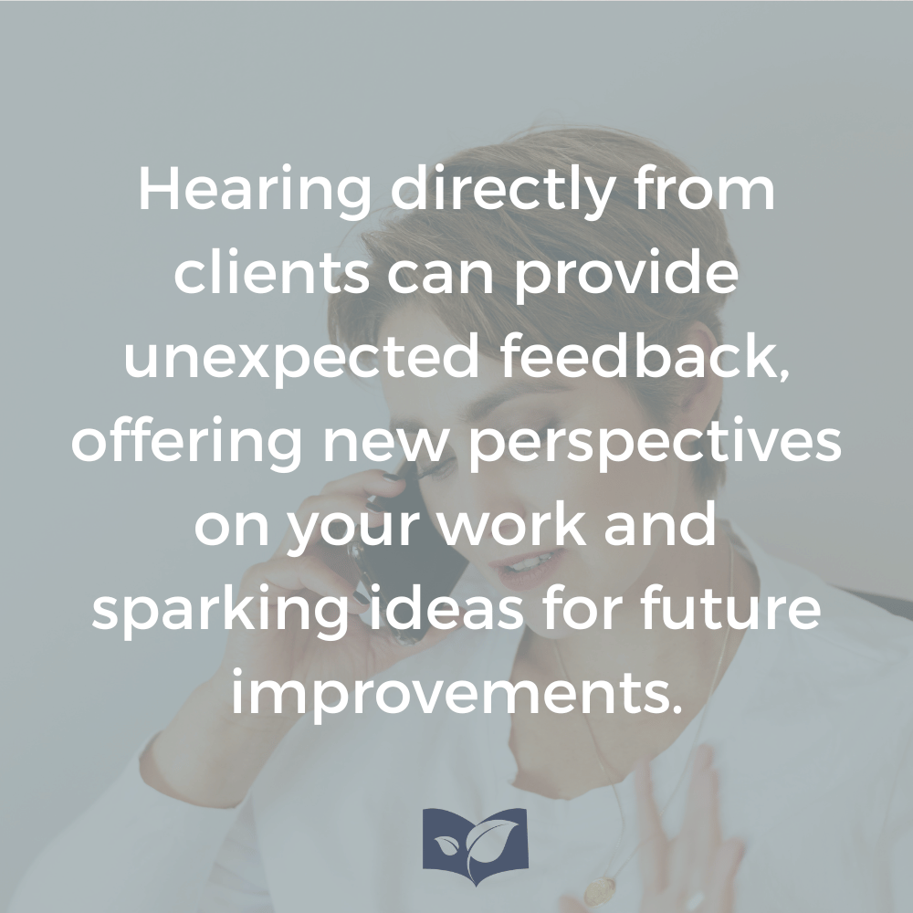 Insight: Hearing directly from clients can provide unexpected feedback, offering new perspectives on your work and sparking ideas for future improvements.